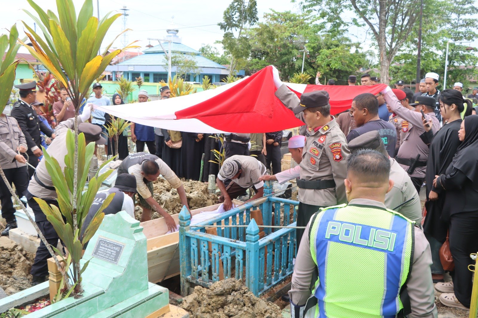 Upacara pemakaman tersebut berlangsung dengan penuh khidmat.(Hms).